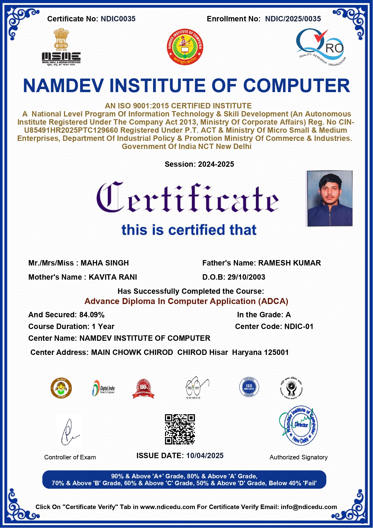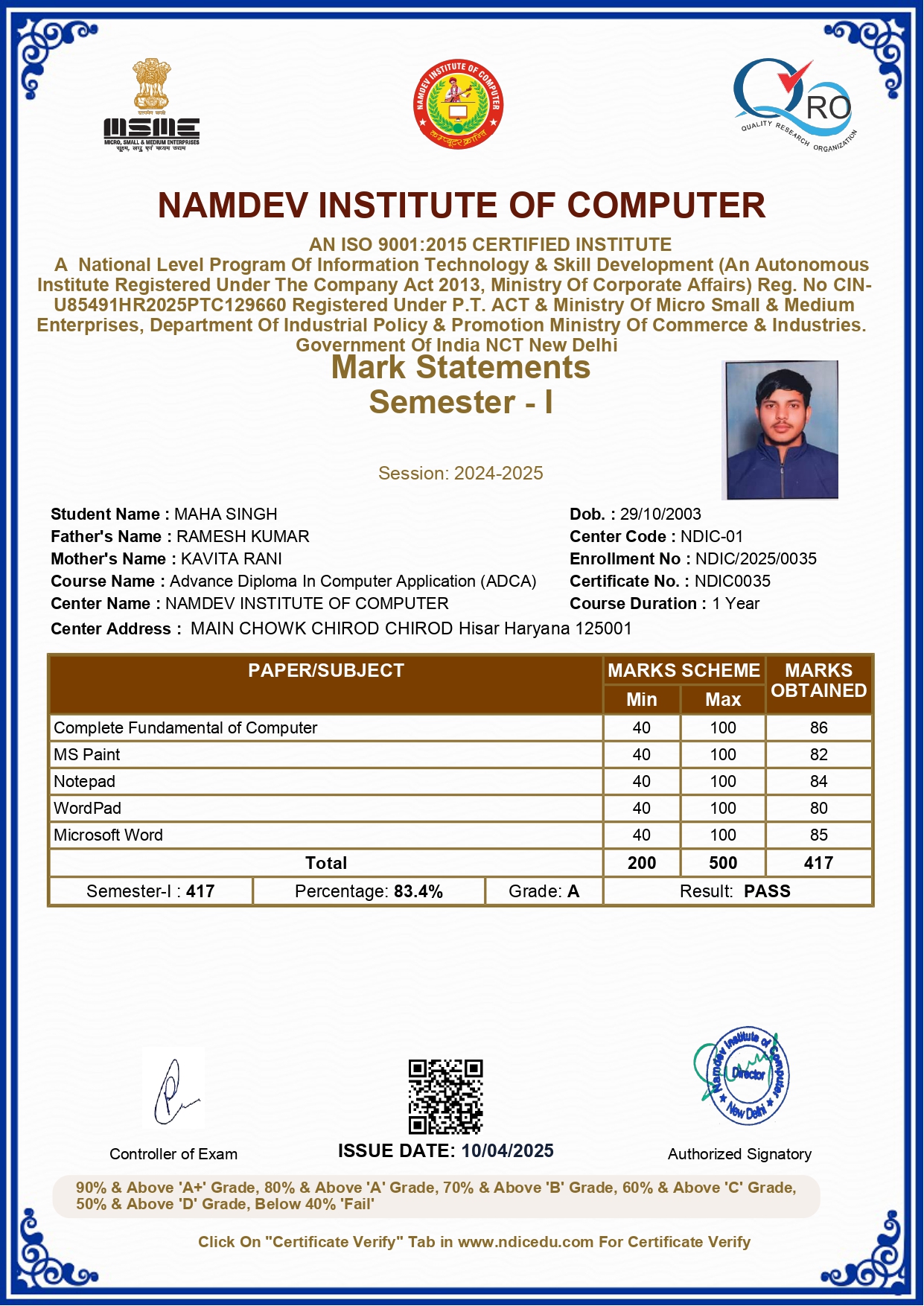 Marksheet & Certificate Verify